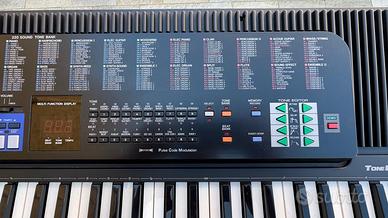 Tastiera 5/8 ( cinque ottave). Completa di cavalletto come da prima foto. 220 tipi di suono. 110 tipi di accompagnamento. Possibilità di ingressi/uscite midi/jack per diffusori, pedali come da foto 5 . Possibilità di suonare ovunque anche in assenza di corrente grazie al vano batterie . Usata pochissimo. Ottime condizioni . Vendo per sbarazzo casa.