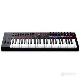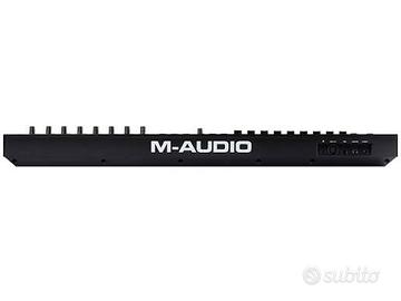 M-Audio Oxygen Pro 49 49 tasti semipesati sensibili al tocco con aftertouch e zone assegnabili 16 pad RGB retroilluminati, assegnabili e sensibili al tocco Funzione Note Repeat 8 manopole e pulsanti assegnabili 9 fader assegnabili Modalità Smart Chord Modalità Smart Scale Arpeggiatore Pulsanti per la navigazione e il trasporto musicale Rotelle per pitch e modulazione Ingresso per pedale sustain: jack da 6,3 mm Porta USB-B per funzioni MIDI e alimentazione Uscita MIDI: DIN a 5 poli Schermo OLED Dimensioni (L x P x A): 800,1 x 264,2 x 83,8 mm Peso: 4,2 kg