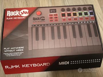 RockJam Go 25 Key USB & Bluetooth MIDI Keyboard Controller con 8 Drum Pad Retroilluminati, 8 Manopole come nuova si collega a cellulare con APP o pc con Bluetooth o con cavo usb compreso. Possibilità di prova, con consegna preferibile a mano zona Bologna.
