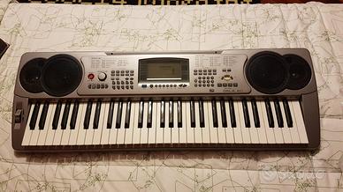 Tastiera ORLA KX5 portatile praticamente nuova dotata di alimentatore, leggio, manuale di istruzioni e supporto pieghevole in acciaio dotato di meccanismo di regolazione rapida. 61 tasti sensibili al tocco, possibile ascolto in cuffia e collegamento ad amplificatore esterno. Registrazione e riproduzione tracce. Display retroilluminato. Peso tastiera kg. 6 e dimensioni cm. 94 x 33 x 11. Peso supporto pieghevole kg. 2,6 e dimensioni cm. 90 x 36 x 7 chiuso.