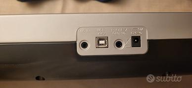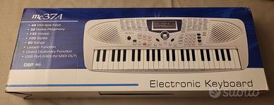 Tastiera musicale elettronica Electronic Keyboard mc37A come in foto, perfettamente funzionante, con cavo di alimentazione, altoparlanti integrati, pulsanti per la selezione di stili e suoni, display LCD per visualizzare le informazioni, corredato dalle istruzioni d’uso; in omaggio la custodia fatta su misura con tracolla per portarla ovunque. In ottime condizioni, usata poco, tenuta benissimo. Misure: lunghezza cm. 68, larghezza cm. 27, altezza cm. 8. Peso kg. 3. Essendo un articolo un po' ingombrante, sarebbe preferibile la consegna a mano in Torino e dintorni.