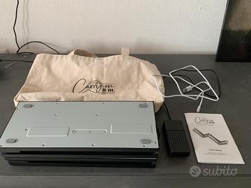 Tastiera pieghevole in quattro sezioni con batteria ricaricabile a lunga durata e altoparlanti integrati, pedale sustain, cavo di ricarica e borsa da trasporto. Ideale per esercitarsi e per piccole performance ovunque tra amici, bel suono se collegata ad altra amplificazione o suonata in cuffie. Acquistata da meno di una anno e utilizzata per sole due volte, vendo per passaggio ad altro strumento.