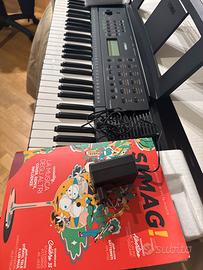 NUOVO aperto solo 1 volta e rimesso a posto per acquisto errato: (DA VALUTARE CON SPEDIZIONE). caratteristiche Numero di tasti: 61 Display LCD Generazione sonora: Campionamento stereo AWM Numero di polifonia 32, 392 voci + 18 kit di batteria/SFX Effetti, stili di accompagnamento, Numero di brani preimpostati: 122 (inclusi 10 tutor di ritmo e 12 brani di studio degli accordi) Connessioni: ingresso CC 12V, Uscita Cuffie, Pedale Presa AUX IN per il collegamento di una sorgente audio esterna Funzione didattica (3 passi) Funzioni di registrazione e modalità Quiz Stereo Speakers (12cm x 2/2.5W x 2) Funzionamento a batteria (AAx6) Dimensioni (LxPxA): 940 x 104 x 317mm Peso: 4 Kg