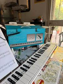 Tastiera elettrica funzionante anche con batteria ricaricabile, con 88 tasti pieghevole in quattro parti, completa di borsa per il trasporto, cavetto di ricarica e pedale sustain, con ingresso cuffia. Usata solo due volte , con scatola originale.