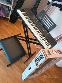 tastiera RockJam 61 tasti completa di poggia tastiera e seggiolino imbottito. Perfetta. adesivi delle note tolti prima di averla messa via.