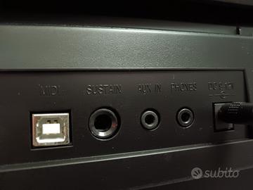 Compresa di supporto, leggio, sgabello, cuffie, pedale sustain, alimentazione e telo copritastiera.