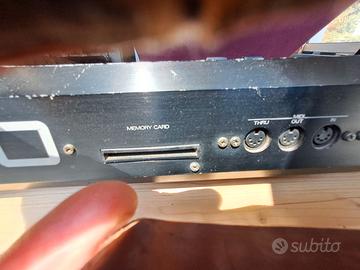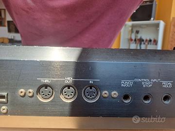Vendo mitica tastiera Roland d20, è funzionante, ha qualche piccolo difetto poco influente nel funzionamento complessivo: il volume e il cursore value non funzionano, quindi bisogna regolare il volume dell'amplificatore; il ritmo si sente pianissimo e un tasto ogni tanto suona con un leggero ritardo; non ho mai usato il floppy disk da quando l'ho comprata,