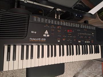 La Roland E-28 è una tastiera arranger intelligente prodotta nei primi anni '90, molto apprezzata per la sua versatilità. Dispone di una tastiera a 61 tasti sensibili alla dinamica, 24 note di polifonia, 223 suoni interni, 64 stili musicali e 8 drum kit, rendendola ideale per composizione, performance dal vivo e uso amatoriale.