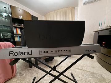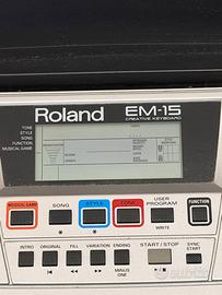Tastiera Roland EM-15 con scheda audio MIDI integrata che produce basi audio reali per live. Ideale per studio, live o qualsiasi altra cosa. Inclusa copertura antipolvere e istruzioni. Ps c’è un tasto che non suona da riparare con pochi euro.