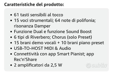 Vendo tastiera Yamaha 61 tasti pari al nuovo, completo di scatola originale e supporto di appoggio apposito .