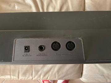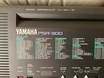 Tastiera Yamaha PSR-300 con cavalletto da 5 ottave. Venduta con il suo trasformatore, ma funziona anche a pile. Presenta una rottura nella plastica in un angolo. Perfettamente funzionante. Cavalletto in metallo regolabile incluso.