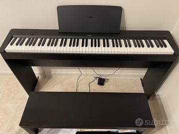 Pianorte elettronico 88 tasti pesati Yamaha P-145 BT, completa di pedale sustain, mobiletto e manuale. 10 voci abbinabili, metronomo e funzioni varie. Ottima per principianti o per suonare in appartamento. Acquistata dicembre 2025. Praticamente nuova, usata solo in casa. Vendo per passaggio a pianoforte acustico
