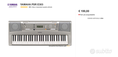 La PSR-E303 è una tastiera di notevole valore che offre utili funzioni per imparare ed esercitarsi insieme a semplici funzioni di registrazione in uno strumento di qualità e sensibile al tocco. Oltre a 482 voci dinamiche autentiche - con 361 voci XGlite e 12 Drum Kits la PSR-E303 dispone inoltre di 106 stili di accompagnamento e 102 brani built-in. Il tasto Portable Grand permette di richiamare istantaneamente il suono di un pianoforte a coda mentre Yamaha Education Suite 5 permette di imparare a suonare ed esercitarsi divertendosi. Grazie ad un'interfaccia USB-MIDI opzionale è possibile scaricare i brani direttamente da Internet e memorizzarli nella memoria Flash dello strumento.