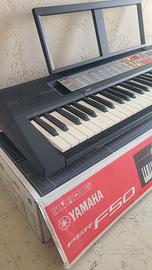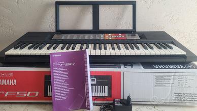 Tastiera Yamaha PSR F50 compresi accessori: leggio, alimentatore, manuale. Pannello semplice e intuitivo, strumento molto divertente. 61 tasti con 120 voci e 114 ritmi.