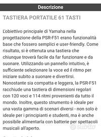 Tastiera Yamaha PSR-F51 praticamente nuova. Ha anche imballaggio integro e manuale di istruzioni. Perfetta anche per un regalo. Vedi nelle foto la descrizione di tutte le sue funzioni .