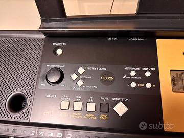 TASTIERA PORTATILE 61 TASTI •Tastiera: 61 tasti •Polifonia: 32 note •Voci e stili: 375 voci di alta qualità (Stereo Grand Piano, 361 voci XGlite, 12 Drum Kit e Sound Effect Kit) e 100 stili di accompagnamento •Sound Effect Kit: Suono dell'acqua corrente, una porta che cigola e molti altri effetti unici •Yamaha Education Suite (YES): Set avanzato di utili strumenti di apprendimento incorporati che ti permette di imparare a suonare velocemente •Tasto Portable Grand: Un tasto dedicato consente di richiamare un grande suono di pianoforte, sorprendentemente ricco e autentico nel suono •Reverb: Diversi tipi di riverbero consentono di aggiungere l'ambientazione di una sala da concerto alla vostra performance •Alimentatore incluso •Dimensioni: 945 x H118 x 348mm •Peso: 4,5kg