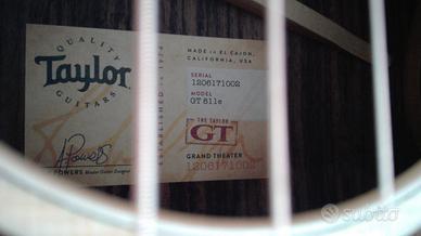 Chitarra selezionata tra molte dello stesso modello per ritrovare una tastiera e un ponticello il più possibilmente NERO con il minimo di venture chiare (odiose da parte mia) degli ultimi modelli Taylor. Piacevolissima, leggerissima e comodissima da suonare. Suono equilibrato, ricchissima di armoniche, e che presi per sostituire una Martin D35 (stessi legni, completamente in massello) che trovavo ingombrante, impegnativa e scomoda. Saranno pure opinioni personali ma la D35 se la mangia. Gioiellino di Andy Powers, liutaio della Taylor.