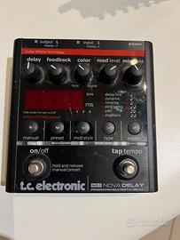 ND-1 Nova Delay mette a disposizione degli effetti digitali caratterizzati da una qualità senza compromessi, racchiusi in un pedale dal design compatto. ND-1 Nova Delay è un delay stereo digitale dotato di due impostazioni: MANUAL (riproduce la posizione attuale delle monopole), PRESET (contiene un suono programmato richiamabile in qualsiasi momento). Le due modalità sono selezionabili dai tasti di controllo o mediante il footswitch Manual/Preset. Il pedale ND-1 Nova Delay fornisce 6 diversi tipi di effetti delay: Line, Dynamic, Reverse, Ping-pong, Pan e Slap-back; ciascuna di queste tipologie può essere combinata ad uno stile, spaziando da un delay a nastro vintage ad un moderno delay digitale. Questa caratteristica esclusiva ti permetterà di mixare e individuare il tipo di delay e lo stile che contribuirà alla creazione del tuo suono, rendendolo unico. Sia il delay a linea singola, sia il delay Dual possono essere applicati a qualsiasi tipo e stile disponibile, utilizzando lo switch Tap Tempo o la manopola Delay Time per determinare la velocità dell'effetto. È possibile applicare tre diversi tipi di modulazione (Light, Medium e Heavy) a qualsiasi tipo di delay - una caratteristica nata dal mitico processore TC 2290 Dynamic Digital Delay. Grazie alla nuovissima tecnologia Audio Tapping è possibile stabilire il parametro Tempo del delay suonando una ritmica e inviando il segnale al pedale, mentre si tiene premuto lo switch Tap Tempo. Ora, potrai impostare il tempo del delay usando la tua migliore risorsa: il tuo modo di suonare.