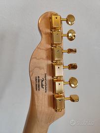 Vendo Squier Telecaster 40th Anniversary Gold edizione limitata, usata pochissimo, ottime condizioni. Solo consegna a mano in zona Friuli. Specifiche: • Body: Nyatoh • Manico: Acero • Binding: Nero • Finitura: Uretano satinato • Profilo: "C" Shape • Scala: 25.5" (648mm) • Tastiera: Alloro Indiano • Raggio: 9.5" (241mm) • Tasti: 21, Narrow Tall • Capotasto: Osso • Larghezza: 1.650" (42mm) • Intarsi: Dot neri • Truss Rod: Head Adjust • Pickup: Fender Designed Alnico Single-Coil • Controlli: Volume, Tono, Selettore pickup 3-Vie • Ponte: 3-Sellette String-Through-Body • Hardware: Dorato • Meccaniche: Vintage-Style • Battipenna: 1-Strato, Alluminio anodizzato nero • Piastra del manico: 4-Bolt Squier 40th Anniversary • Finitura: Black