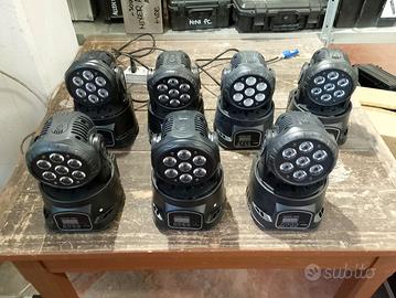 Vendiamo 7 teste mobili mini wash RGBW adatte per chi vuole un set di luci dinamico e comodamente portabile, disponibili per prova, ritiro presso i nostri magazzini, spedizione non inclusa, da concordare al momento dell'acquisto e a seconda dei pezzi acquistati.