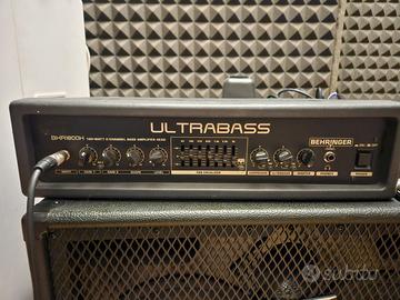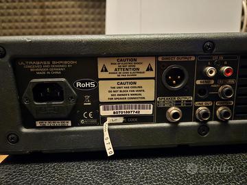 -Testata BEHRINGER BXR1800H Ultrabass. Il BXR1800H Ultrabass fornisce 180 Watt di potenza con alti e medi cristallini. Canale Clean per un suono aperto oppura canale Distortion per un overdrive potente. EQ grafico a 7 bande e analizzatore di spettro FBQ per creare il proprio suono (90€)