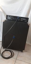 Testata per basso con cassa realizzata artigianalmente su progetto e altoparlante originale Peavy 300w, realizzata con multistrato marino e rifinita professionalmente da azienda specializzata nel settore ; l'amplificatore è stato ricondizionato con la sostituzione della parte finale di potenza con un modulo FBT da 150 Watt e implementato da controlli interni, relativi alla gestione della ventilazione per surriscaldamento, protezione della cassa in caso di malfunzionamento e anti- bump nella fase di accensione dell'apparato.