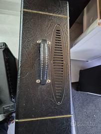 Vendo Testata valvolare Bugera 1960 infinium da 150 watt. La testa e in perfette condizioni. È ispirata al marshall plexi con controlli del presence, bassi,medi,alti e 2 volumi. I 4 ingressi permettono di avere 4 differenti sfumature e regolazioni del suono. I primi due in alto sono già ponticellati come si faceva col marshall plexi mentre in du in basso sono in cascata. il volume uno si riferisce alla prima colonna degli ingressi a sinistra e il volume due alla seconda colonna di ingressi a destra. Se si usano quelli a destra il volume uno non funzionerà poiché verrà attivato solo il 2. nella parte posteriore abbiamo i led dello stato delle valvole, il master con pulsante di disattivazione dello stesso, send e return con disattivazione e Gudafno di +4 o -10dBV, selettore di impedenza e due usxite speaker. Suono classico british crunch espandibile con altri pedali a scelta per sfruttarlo anche per altri generi. Prezzo trattabile e valuto scambi o permute con chitarre,bassi,amplificatori e testate ,pedali e pedaliere,custodie rigide per chitarra e basso, pezzi di ricambio per fiat 500 d'epoca e piaggio bravo/si/boxer/ciao e simili,funko pop.