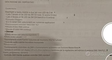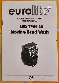 n. 2 Teste eurolite LED TMH-20 Moving Head Wash washlight testa mobile a due lati LED da 3 watt lato 1 - 36 led rossi verdi blu - lato 2 36 led bianchi e ambra. Funzionamento automatico e dmx