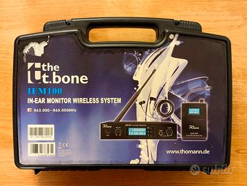 Vendo per passaggio a sistema in-ear più performante questo set della the t.bone IEM100T completo di alimentatore originale, ricevitore bodypack IEM 100 R, accessori per il montaggio a rack, convertitore d'antenna e custodia in plastica.