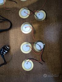 Vendo componenti per progetti di batteria elettronica, piezoelettrici, cuscinetti di sensibilità, connettori passivi, cavi di collegamento, ecc., tutto ciò che si vede nella prima foto, compresi due trigger pronti all'uso.
