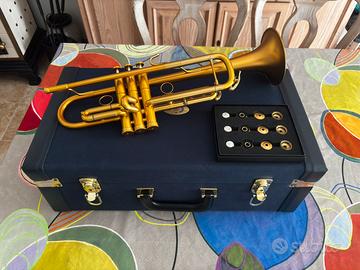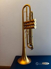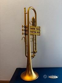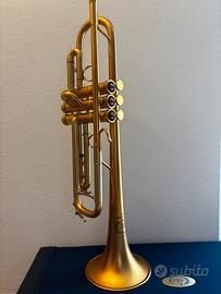 Tromba nuova di zecca con una piccola protuberanza nel primo tubo della valvola. Ideale per l’assolo jazz con una vasta varietà di colori sonori. Buono per suonare lead: questa tromba ha un meccanismo dual bore che consente a ogni nota di avere una pressione simile ed essere morbida nel registro superiore estremo. Non lo consiglio per un musicista classico.