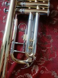 Tromba marca Bach acquistata per mio figlio circa 7 anni fa, rimasta inutilizzata da 5 anni. Tutti i pezzi presenti. Marca di prima scelta, in perfette condizioni se non per un piccolo graffio quasi invisibile che si può notare in una delle foto. Prezzo trattabile nei limiti del ragionevole. Ritiro ad Alba o spedizione a carico dell' acquirente.