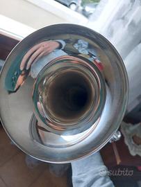 Presenta alcuni normali segni di utilizzo e un piccolo ding sulla prima pompa facilmente risolvibile che non incide sul funzionamento ne sul suono. Vendo con un paio di accessori e custodia Bach originale.