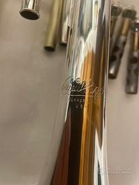 Tromba Bach vbs1 argentata Elkart (usa). Strumento affidabile e ben bilanciato, suono centrato con buona proiezione e risposta uniforme su tutta l’estensione, mat 595604 canneggio ml ( 11.66 mm) campana 123mm profilo standard Bach, valvole in monel scorrevolissime e silenziose. Ottimo stato di conservazione con leggerissimi segni di usura e un piccolissimo ring su campana, argentatura perfetta. Vendo a 1250 euro più spese di spedizione, a disposizione per domande, ulteriori foto e possibilità di prova.