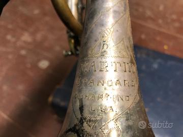 Originale anni 40 perfettamente funzionante in tutte le sue parti e con buona compressione, anche se l’estetica dimostra i suoi anni. Completa di bocchino Bach 6C