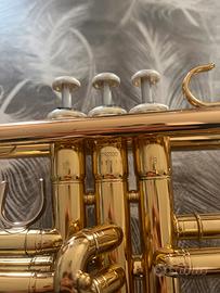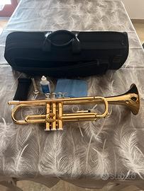 L’articolo comprende,tromba in si bemolle in colorazione oro giallo,custodia per il trasporto dello strumento ,becco 11B4 yamaha,olio per pistoni e fazzoletto per pulizia dello strumento.Difetto:la coulisse ha bisogno di lubrificante.