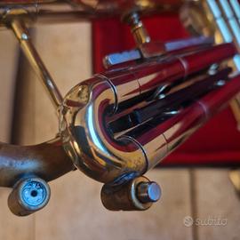 Vendo Tromba Getzen modello Capri con custodia. Pochissimi segni di usura, una piccola ammaccatura su un canneggio. I pistoni scorrono velocemente e sono silenziosi.