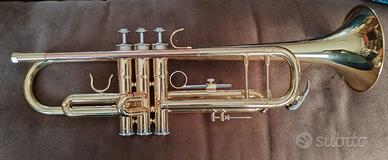 La tromba Master GR TR210 Ida Maria. La laccatura chiara, il cannello ramato e le pompe nichelate le donano un aspetto di strumento altamente professionale. Il canneggio medio/largo è pensato per incontrare le esigenze degli studenti e rende lo strumento versatile per tutti i generi musicali. La custodia è estremamente robusta ed è corredata di due spallacci per utilizzarla a zaino. Lo strumento è corredato di tutti gli accessori per iniziare a suonare: custodia, panno pulizia, olio per pistoni e bocchino.