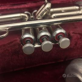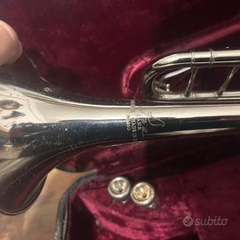 tromba in ottone con finitura argentata, caratterizzata da un'incisione sulla campana che include il logo di un uccello stilizzato e il nome della marca LARK. Sotto il nome sono presenti la dicitura "MADE IN CHINA" e il numero di modello o di serie M4016.