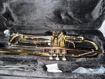 Tromba in ottone nuova, comprata per regalo. Lo strumento é ideale da studio.