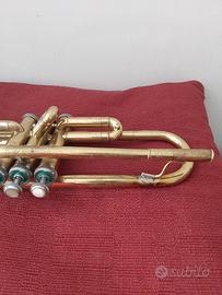 Tromba artigianale marca Mario Corso Cinisello Milano in Si b in condizioni di suonare ma con segni del tempo. Il ponticello vicino all'imboccatura non è originale. I pistoni risultano scorrevoli e le pompe estraibili.
