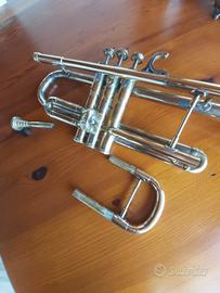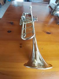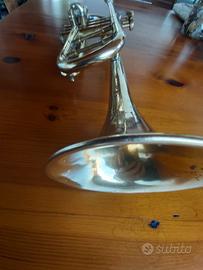 TROMBA MEERUT PRIMI ANNI '900 ( REVISIONATA ALCUNI ANNI FA') NO NUMERO DI SERIE , MA SI LEGGE ' MANIFACTURS MUSICAL INSTRUMENTS MEERUT) OGGETTO DA ESPOSIZIONE .