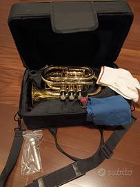 Tromba pocket Thomann TR-5 in Bb, completa di bocchino 7C NUOVO mai usato.