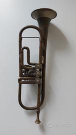 Vendo tromba in ottone Premiata Fabbrica Ferdinando Roth di Milano numero di serie 26, ID 7967 Strumento antico (circa 1850)