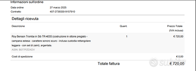 Tromba pari al nuovo, ho fatto solo un'uscita di processione completa di gancio per la lira e lira già inserita nella canna.