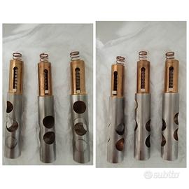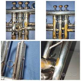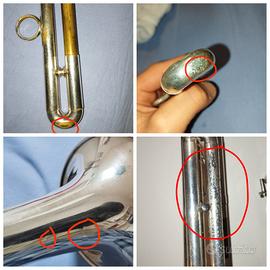 vendo(per cambio modello) la mia tromba professionale Schilke b2 prodotta negli stati uniti nel 1981. La tromba presenta alcune piccole dentature (come evidenziato in foto) ed evidenti segni di deterioramento (come mostrato in foto). La meccanica funziona ancora molto bene, i pistoni scorrono velocemente, tutte quattro le valvole vengono fuori facilmente. Nonostante i numerosi segni di usura la tromba ha ancora una ottima intonazione e compressione. Come ho mostrato in foto, i feltri verdi dei bottoni per le dita sono stati cambiati con dei gommini bianchi originali. I feltri verdi li conservo ancora per chi li volesse. Inoltre, per un gusto personale, ho sostituito le vecchie molle con delle molle Yamaha, poiché le trovo molto più veloci e responsive. Se avete bisogno e se siete (veramente) interessati posso mandarvi tutte le foto e i video che volete. Nella spedizione posso mandarvi sia la vecchia custodia originale Schilke, sia una borsa della Thomann. Il prezzo è trattabile.
