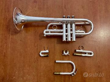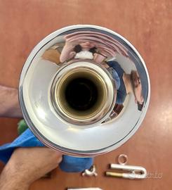 Vendo la mia tromba Schilke E3 Mib/Re a campana corta, lo strumento è tenuto in ottime condizioni (tipo reliquia), dotato di pompe in Re e in Mib. Strumento ormai fuori produzione. Numero di serie: 9316.