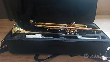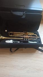 Vendo tromba in descrizione comprata qualche me fa, cambio per livello superiore. In aggiunta ci sono anche bocchino 7C , astuccio guanti panno pulizia e olio. •Intonazione: Sib • Campana: 117 mm • Canneggio: 11,7 mm • Finitura: Laccata • Pistoni: Nichelati • Lead Pipe: Lucida • Astuccio: Case in foam • Accessori: panno pulizia, olio e bocchino