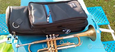 Tromba Yamaha YTR 2320 , anni '90 , usata pochissimo , slaccata , condizioni ottime , compressione top ! Unico difetto una lieve ammaccatura come da foto , con bocchino e custodia Gewa nuova..