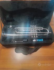 Tromba Vincent Bach TR650S in Sib. Vendo per inutilizzo. La tromba è stata costantemente provata ed è stata effettuata regolare manutenzione. L'argento, in seguito a pulizia con prodotti specifici, risulta ancora molto scintillante, quasi come nuovo. Custodia originale Bach, che può essere usata sia come borsa che come zaino. Contiene inoltre: - olio per pistoni originale Vincent Bach; - supporto da terra per tromba; - leggio; - imboccatura originale Vincent Bach 7C (sottoposta a regolare manutenzione per mantenere la lucentezza, allo stesso tempo pulita e igienizzata. Per ulteriori informazioni o foto aggiuntive non esitare a contattarmi. Prezzo trattabile.